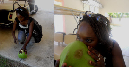 | Maty demonstrates how to get coconut milk |